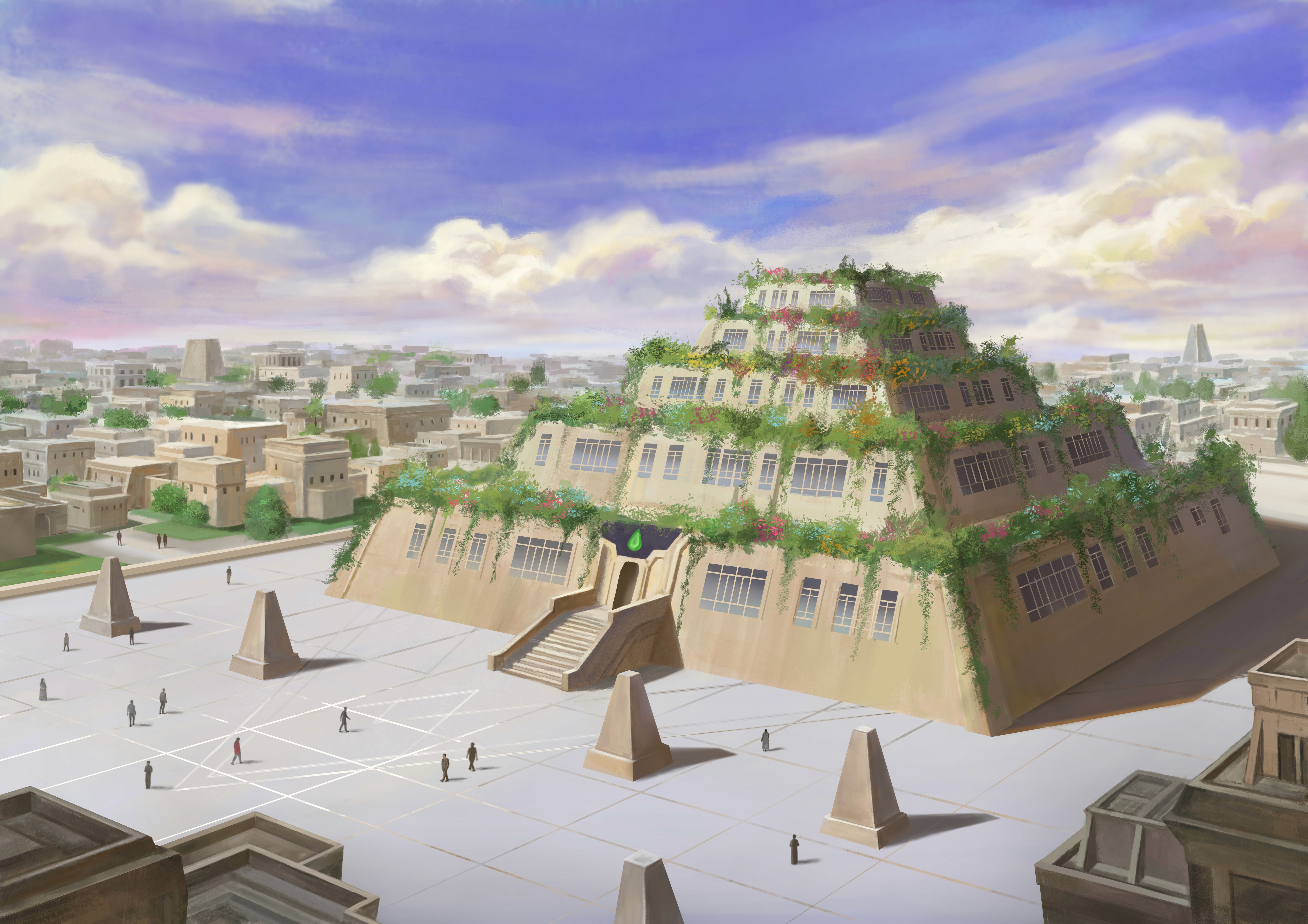Akademia Żeńców wyrastała ponad miasto podobna do ogromnej schodkowej piramidy ze ściętym na płasko szczytem, w której każda kondygnacja była otoczona tarasem. Bujna roślinność spływała kaskadami po gładkich, kamiennych ścianach, dodając masywnej budowli lekkości.